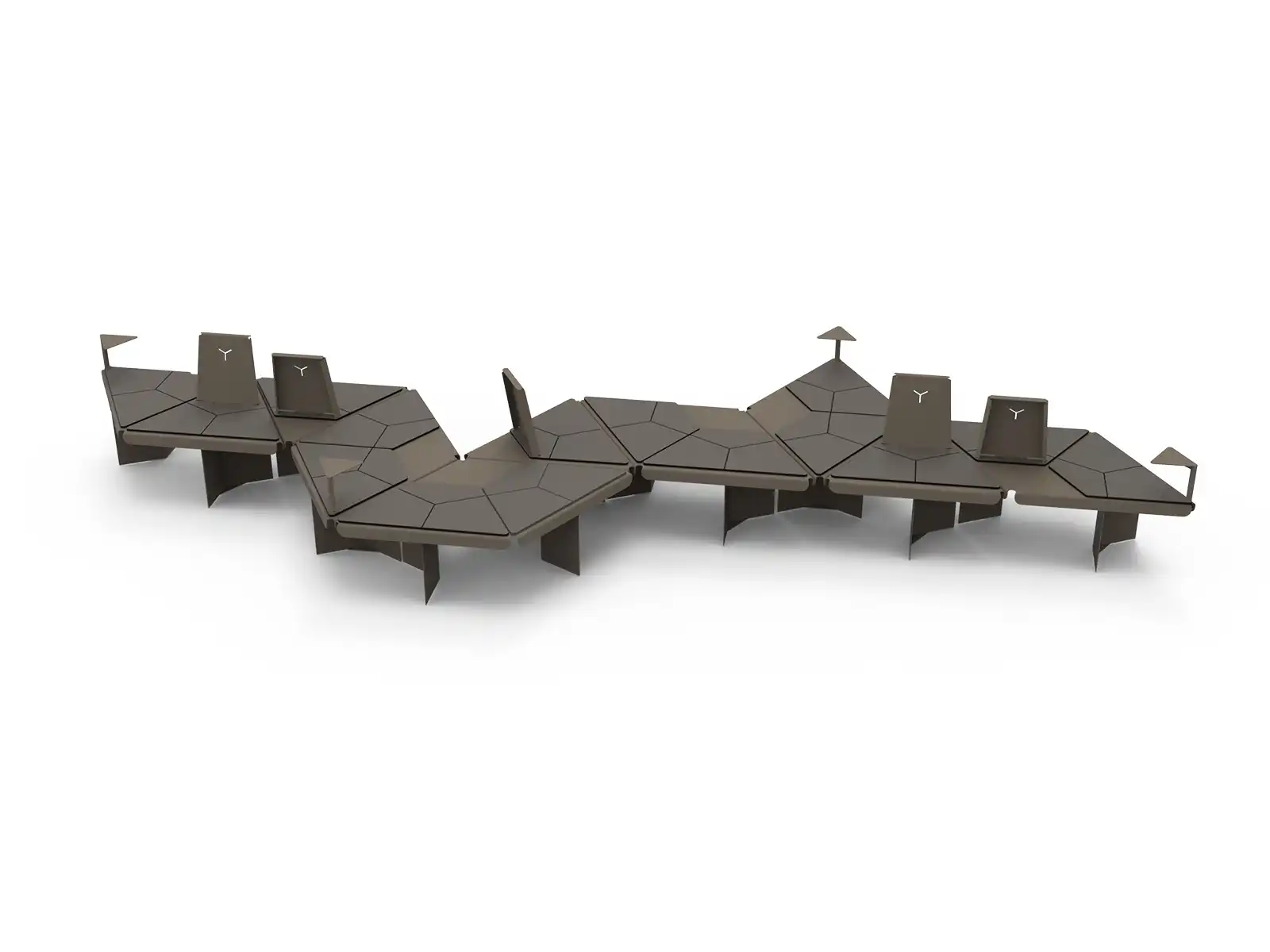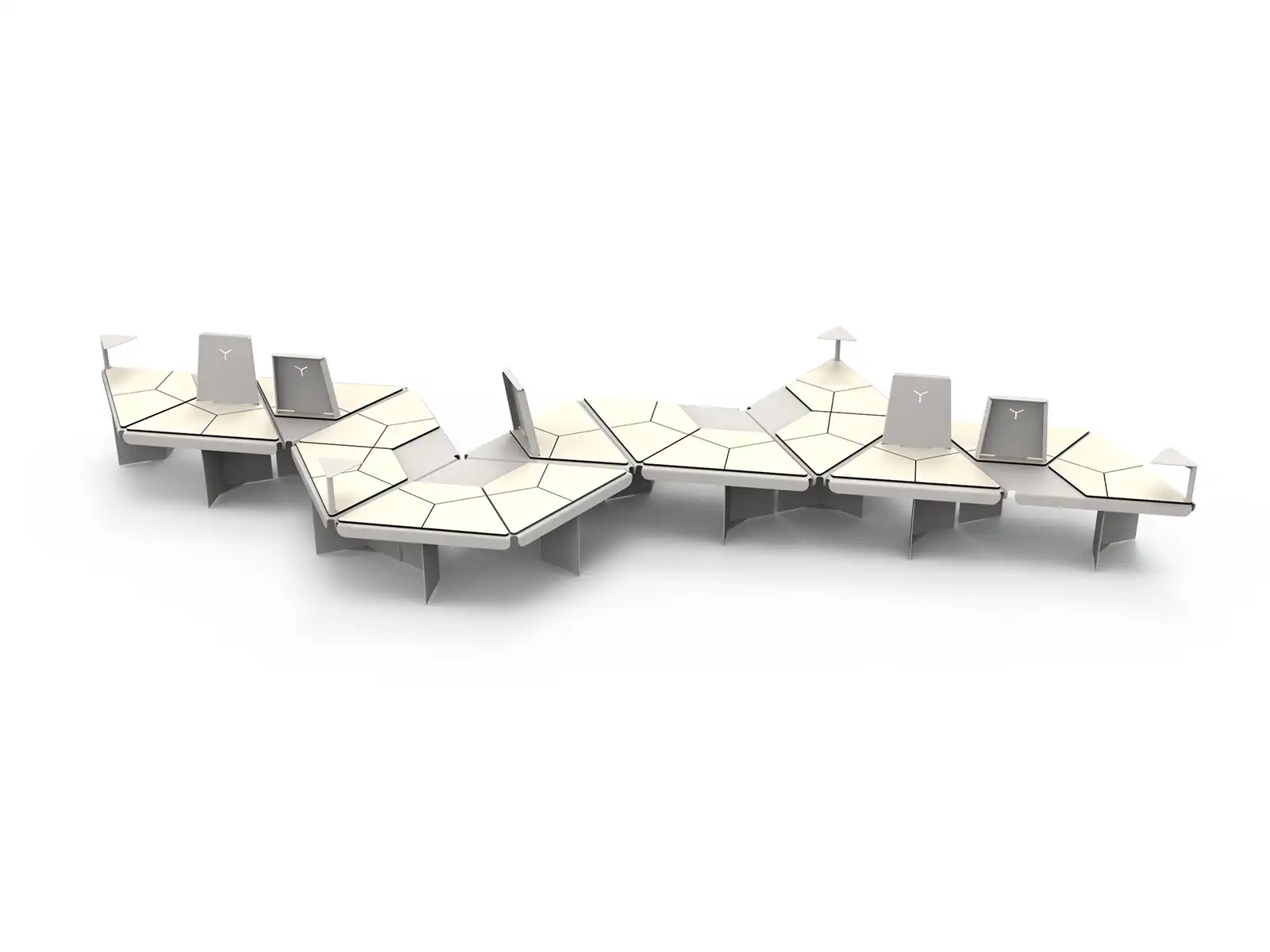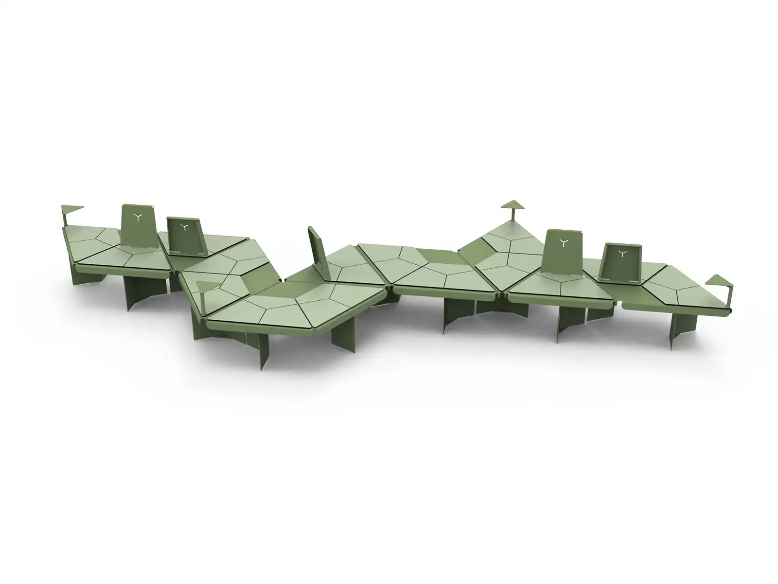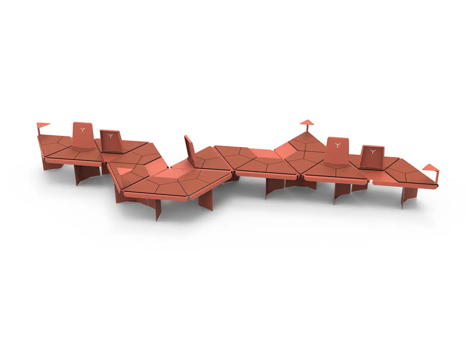 Produktová rada Ypsilon je inovatívny nový vývoj, ktorý odvážne pretvára verejné priestranstvá a parky. Jeho farebný vzhľad prepožičiava exteriéru špeciálnu atmosféru. Konštrukcia je 4 mm hrubá pozinkovaná oceľová doska s práškovým nástrekom v 5 rôznych farbách, povrch sedadla je 12 mm hrubá kompaktná doska vo farbe ladiacej s farbami rámu, čo zaručuje trvanlivosť a odolnosť. Zostavovaním a kombinovaním rôznych foriem je možné vytvárať oddychové zóny rôznych veľkostí v závislosti od dostupnej plochy. Doobjednať za príplatok je možné stolík aj operadlo.