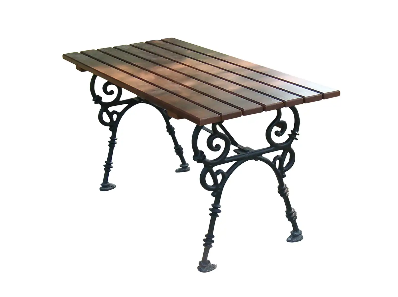 Stôl Hargita k 3 miestnej lavici, má liatinovú konštrukciu, drevené časti tvoria smrekové dosky ošetrené exteriérovou lazúrou. Vyrábajú sa s upevnením skrutkami.