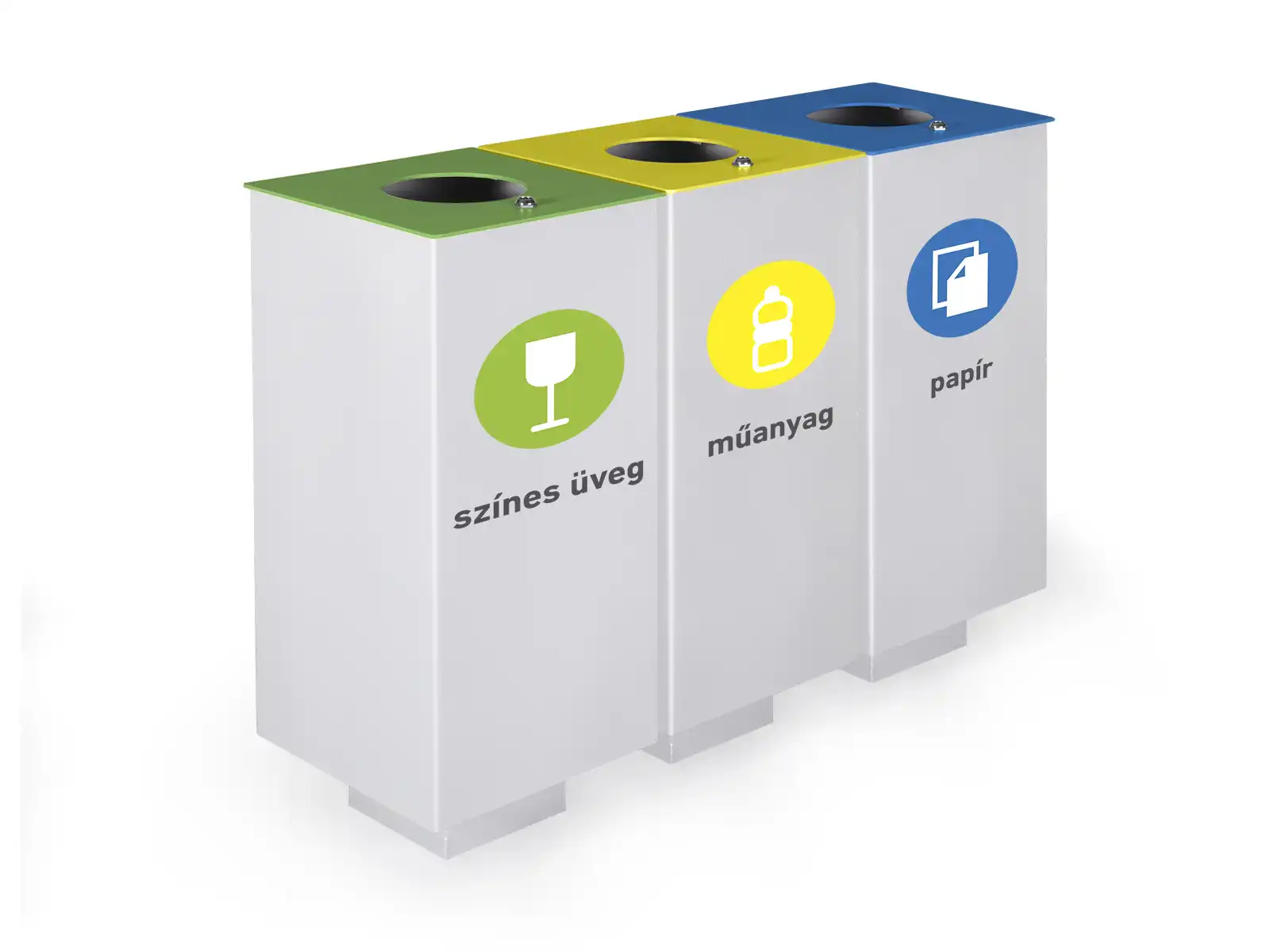 Novinkou v zostave Cube sú odpadkové koše z oceľového plechu, so zatváracou strieškou, konštrukcia zinkovaná oceľ, za príplatok logo z označením, 3x80 l.