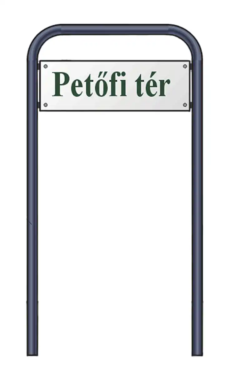 Ohnutá stojanová tabuľa, oceľová trubka pr. 40x2 mm, šírka 700 mm, výška 1100 mm, rozmer tabule 600x200 mm, na zabetonovanie.