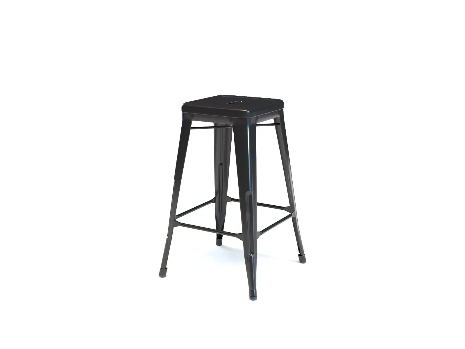 Barová stolička v industriálnom vintage štýle. Vyrobená je z tvarovo lisovaného plechu s práškovou povrchovou úpravou. Stolička je stohovateľná, takže sa dá úsporne skladovať. Dostupná je vo viacerých farbách aj v bežnom (štandardnom) prevedení stoličky. Odporúča sa na používanie v interiéri. Objednať ju možno len po 5 ks z jednej farby.