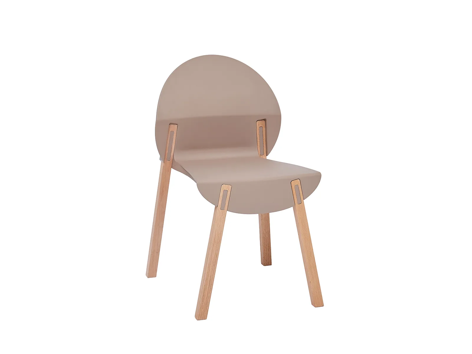 Sklenými vláknami vystužený plastový sedák. Nohy sú vyrobené z červeného duba s hĺbkovou voskovou úpravou, na koncoch s protišmykovými koncovkami. Stohovateľné. Dostupné po 4 ks v jednej farbe.