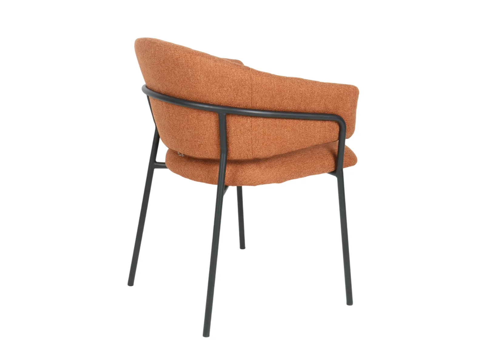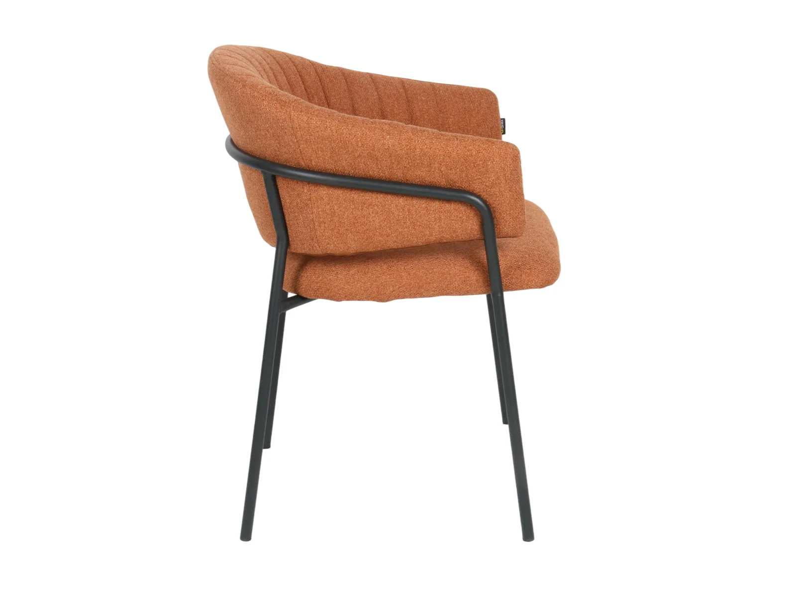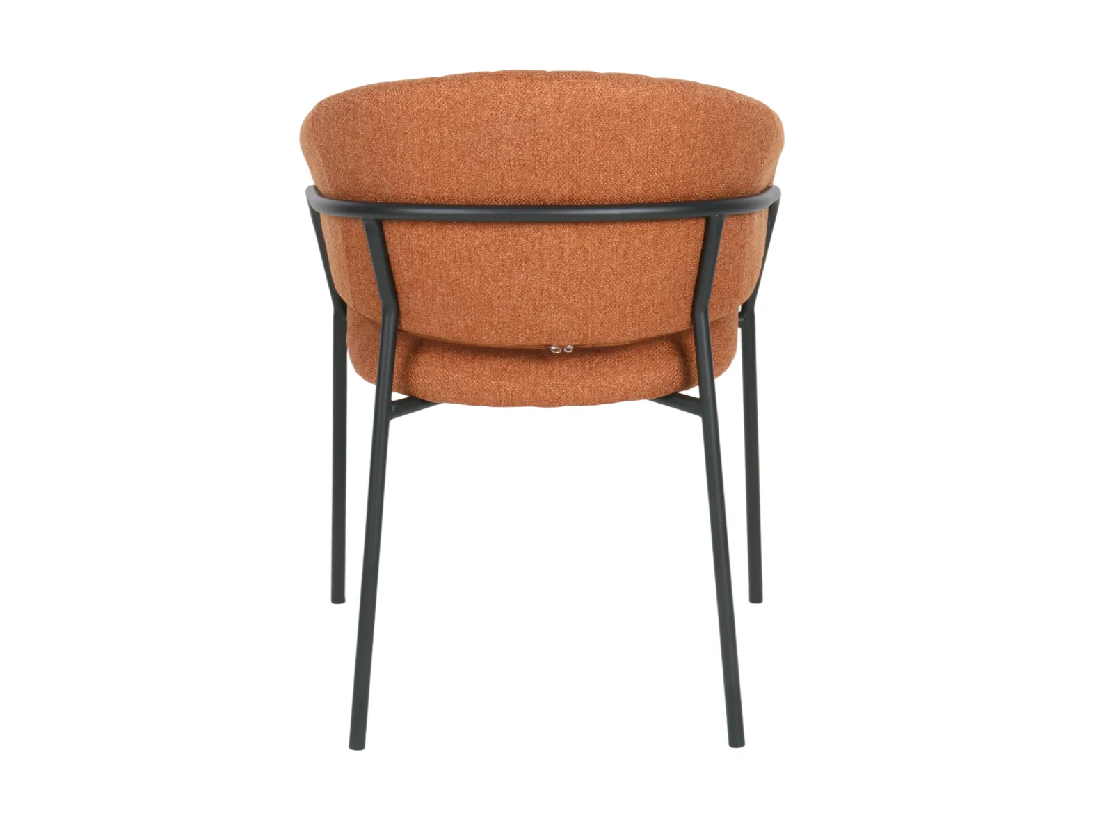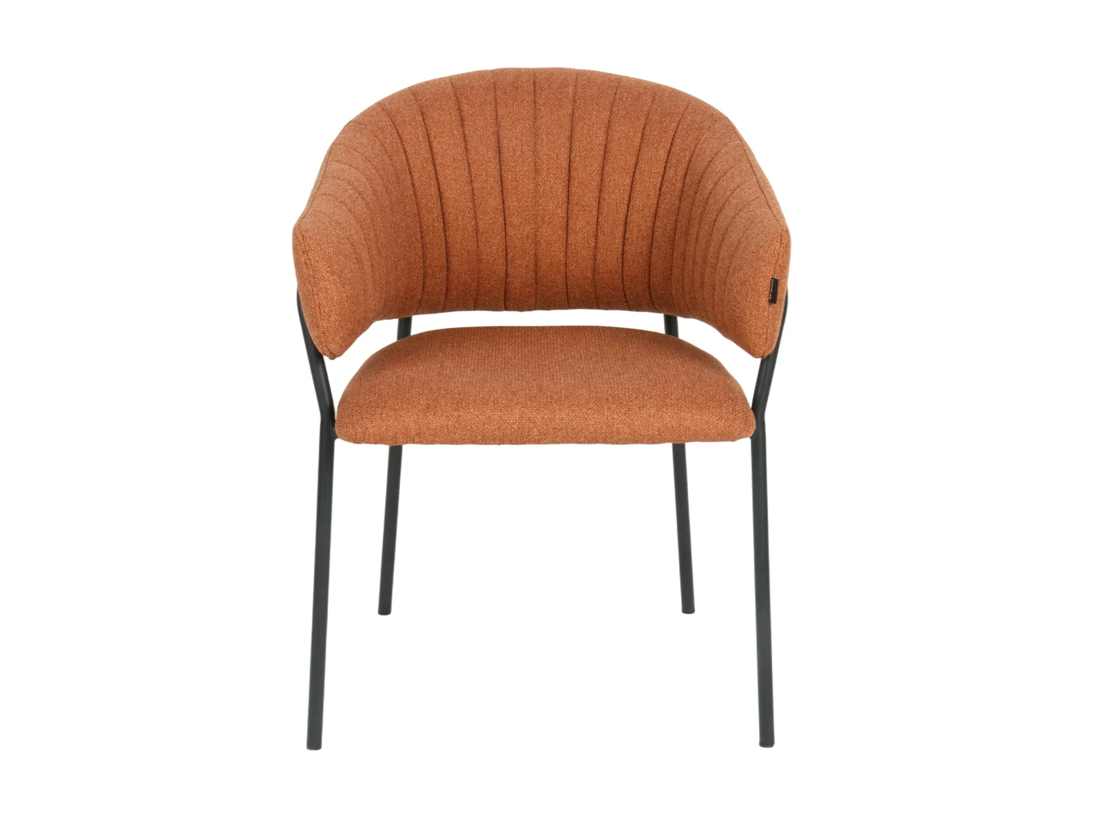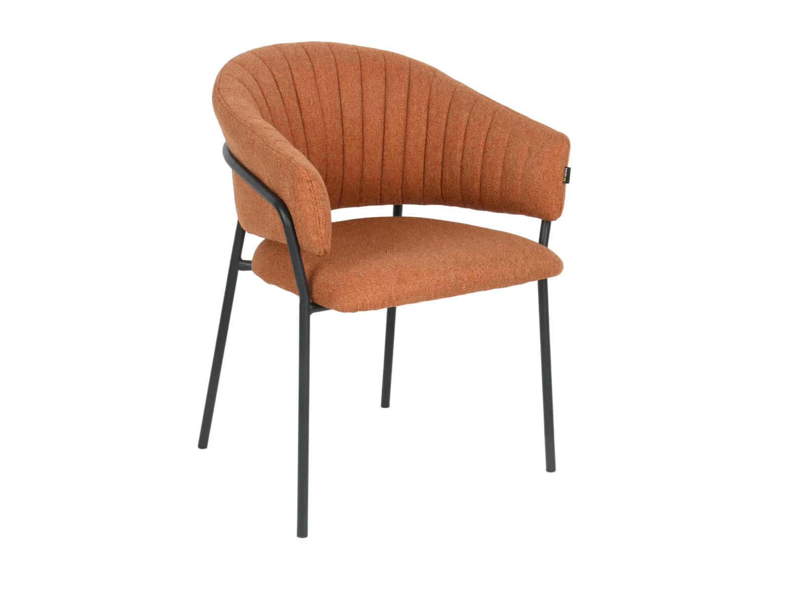 Čalúnená reštauračná stolička s kovovou konštrukciou. Čalúnenie je z vysoko oderuvzdorného recyklovaného materiálu, ktorý je vodeodolný, vďaka čomu je z hygienického hľadiska mimoriadne praktickou voľbou do reštauračných, hotelových a komunitných priestorov. Kovová konštrukcia stoličky je čierna, s práškovou povrchovou úpravou. Dostupná zo skladových zásob.