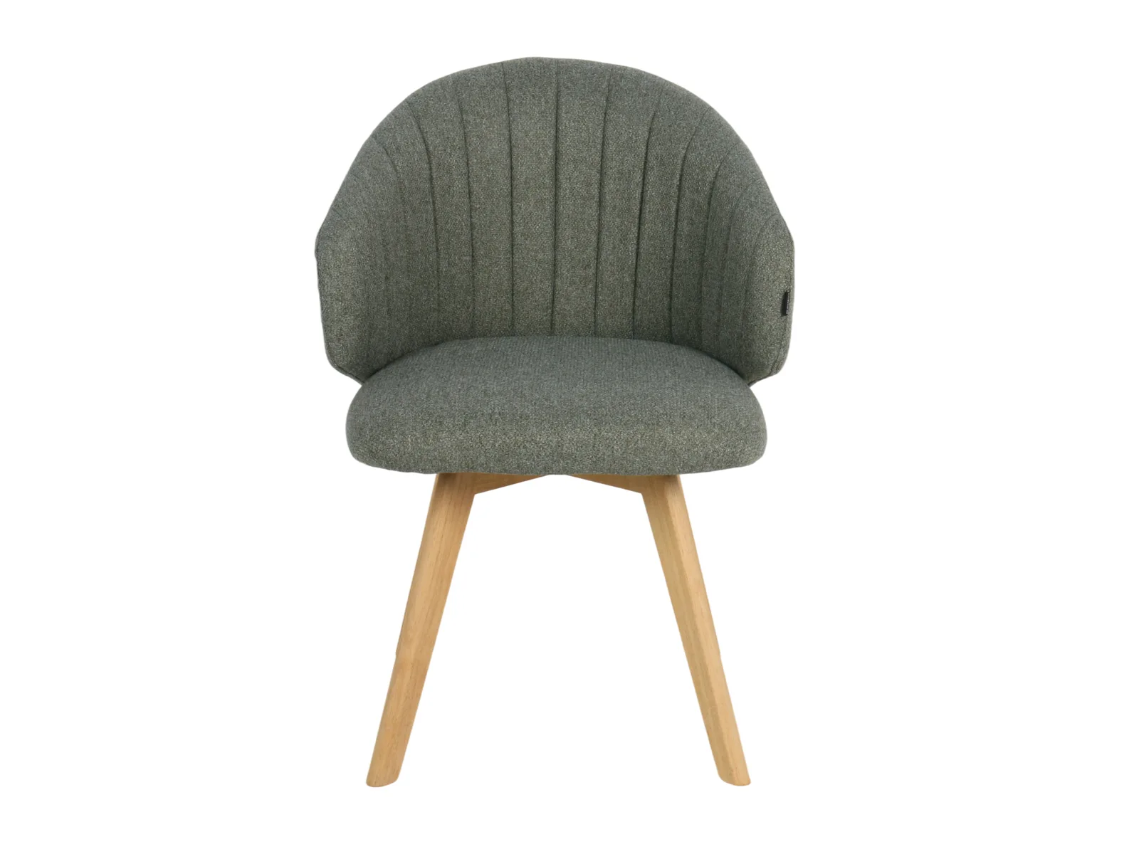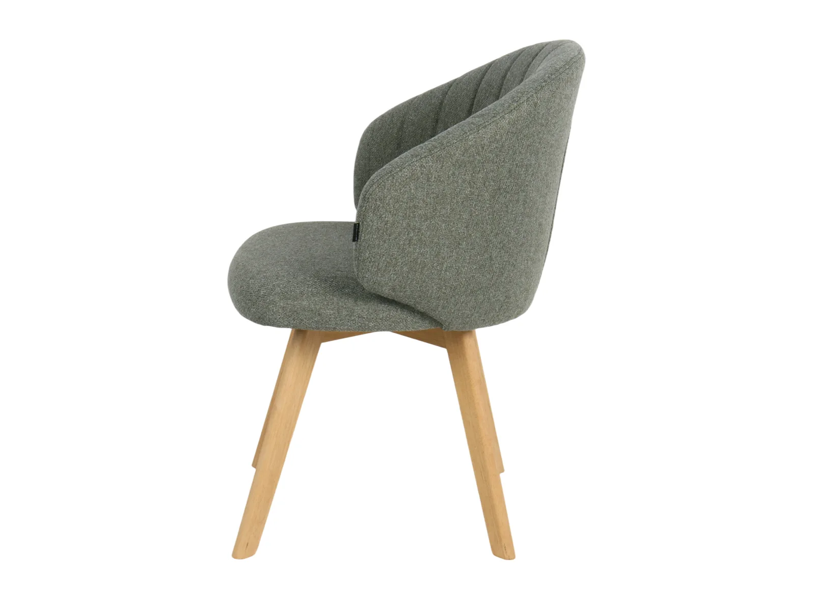 Čalúnená reštauračná stolička s drevenou konštrukciou. Čalúnenie je z vysoko oderuvzdorného recyklovaného materiálu, ktorý je vodeodolný, vďaka čomu je z hygienického hľadiska mimoriadne praktickou voľbou do reštauračných, hotelových a komunitných priestorov. Dostupná zo skladových zásob.