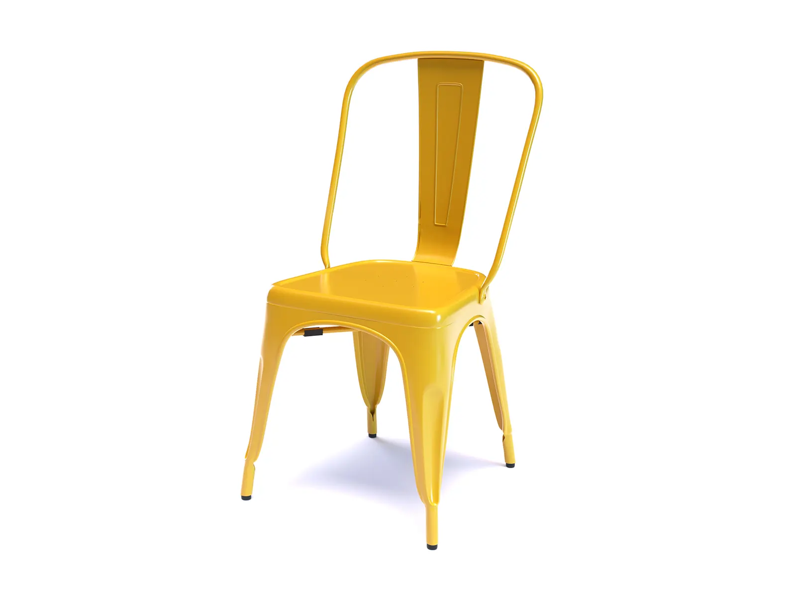 Stolička v industriálnom vintage štýle. Vyrobená je z tvarovo lisovaného plechu s práškovou povrchovou úpravou. Stolička je stohovateľná, takže sa dá úsporne skladovať. Dostupná je vo viacerých farbách aj v bežnom (štandardnom) prevedení stoličky. Odporúča sa na používanie v interiéri. Objednať ju možno len po 5 ks z jednej farby.