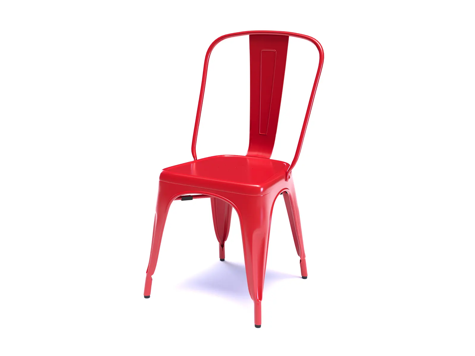Stolička v industriálnom vintage štýle. Vyrobená je z tvarovo lisovaného plechu s práškovou povrchovou úpravou. Stolička je stohovateľná, takže sa dá úsporne skladovať. Dostupná je vo viacerých farbách aj v bežnom (štandardnom) prevedení stoličky. Odporúča sa na používanie v interiéri. Objednať ju možno len po 5 ks z jednej farby.