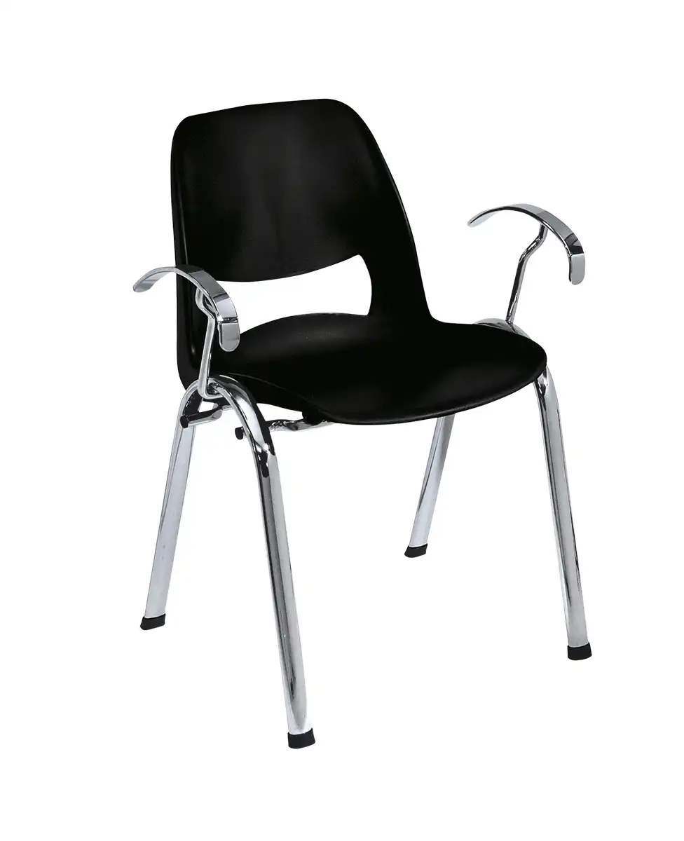 Plastová stolička, stohovateľná, chrómovaná konštrukcia s rozmerom 35x20 mm, plast vo viacerých farbách, s podrúčkami