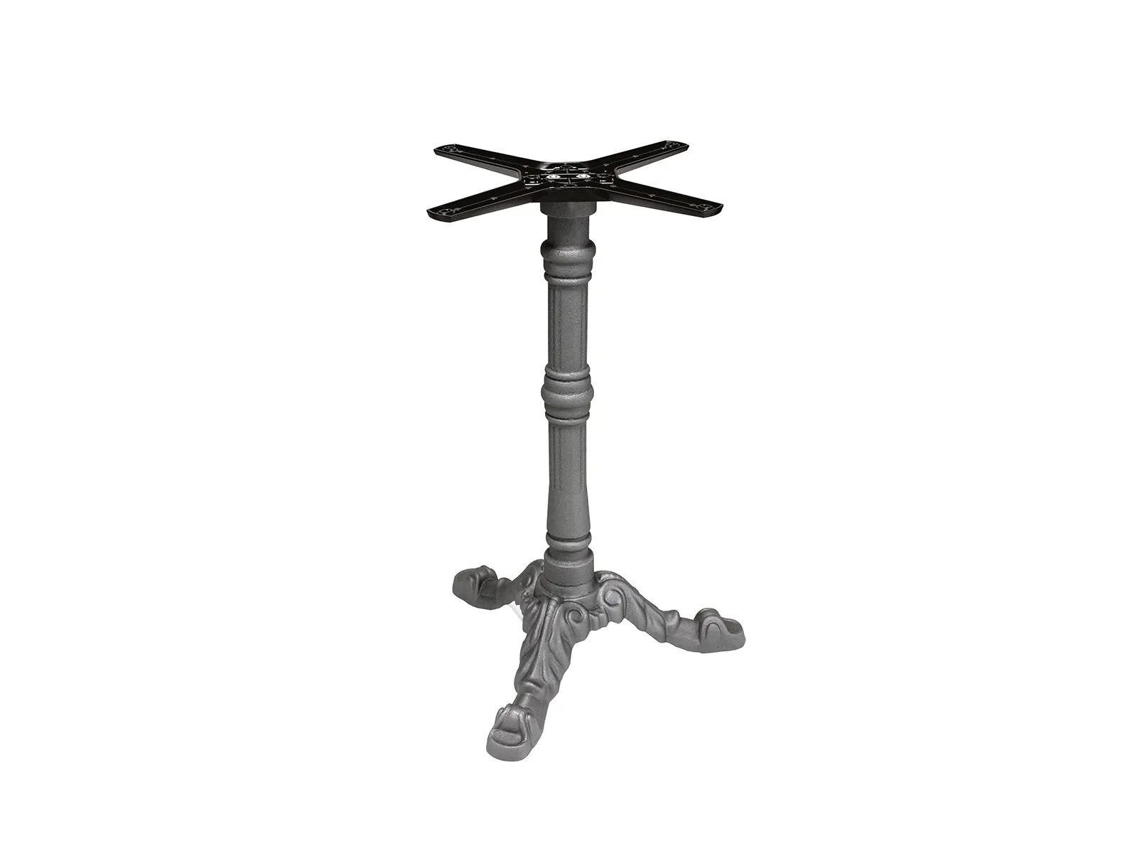Liatinová podnož stola s čiernym štruktúrovaným práškovým nástrekom. S vyrovnávacími pätkami na koncoch nôh. Odporúča sa pre nasledujúce rozmery dosiek stola: š 70 cm, 70x70 cm a š 80 cm, 80x80 cm. Vďaka svojmu jedinečnému vzhľadu môže byť stredobodom pozornosti v gastronomických prevádzkach. Podnož stola je vhodná do interiéru.