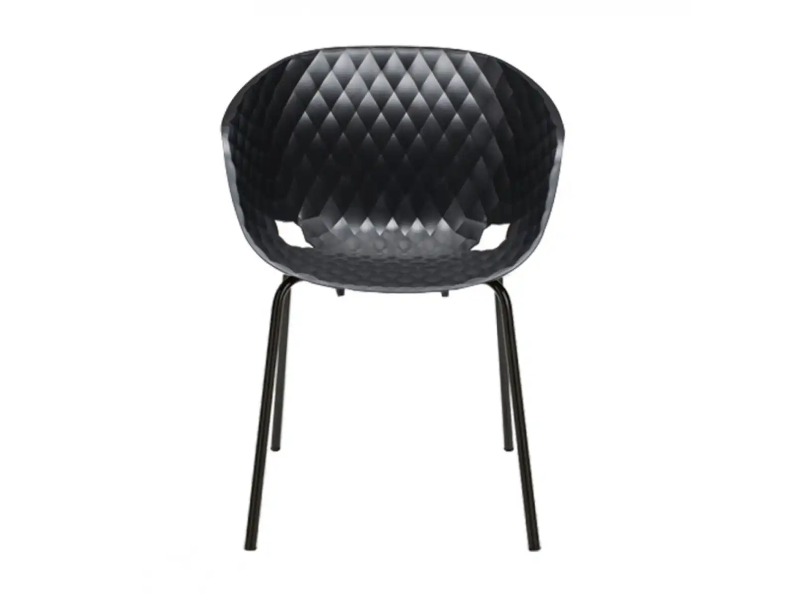 Barová stolička so 4 nohami, oceľový rám, vystužený sklolaminátom, UV odolný polypropylénový poťah, ktorého vzor pripomína diamant. Konštrukcia môže byť na požiadanie chrómovaná. Odporúča sa aj na vonkajšie použitie, možno stohovať. Jeho výška sedu je 76 cm, ale je k dispozícii aj so 65 cm (Uni 378B), možno ho objednať v balení po 4 ks/ farba. Všetky stoličky a barové stoličky z rodiny stoličiek UNI sú dostupné vo všetkých existujúcich dizajnoch.