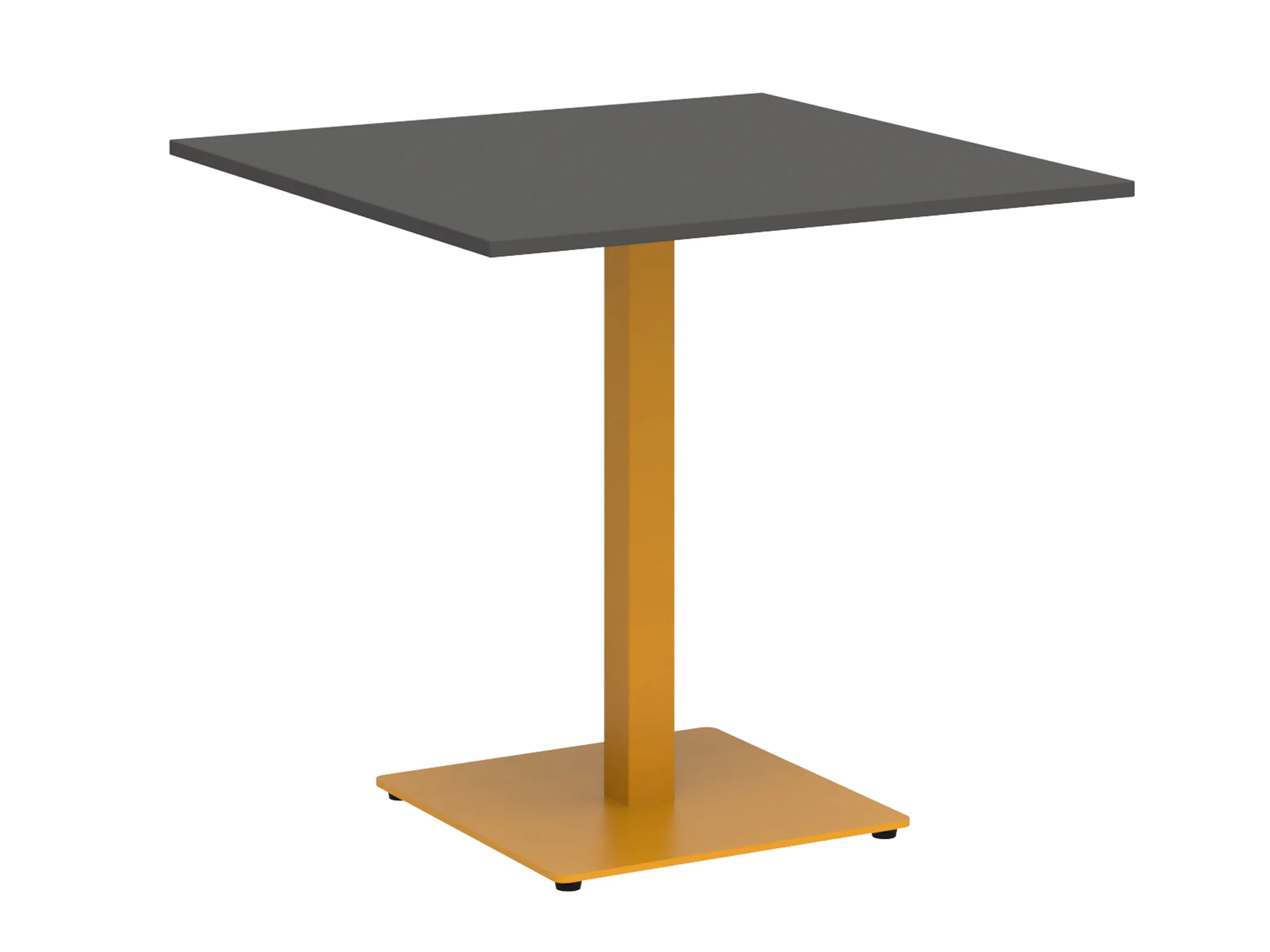 Stôl s centrálnou nohou. Podstavec je z oceľového plechu s hrúbkou 8 mm a rozmermi 45×45 cm, povrchovo upravený elektrostatickým práškovým nástrekom. Stĺpik je vyrobený zo štvorcovej ocele s profilom 60×60 mm. Na podstavci sú 4 nastaviteľné nožičky na vyrovnanie nerovností podlahy. Doska stola je z 18 mm laminátovej dosky s 2 mm ABS hranou.