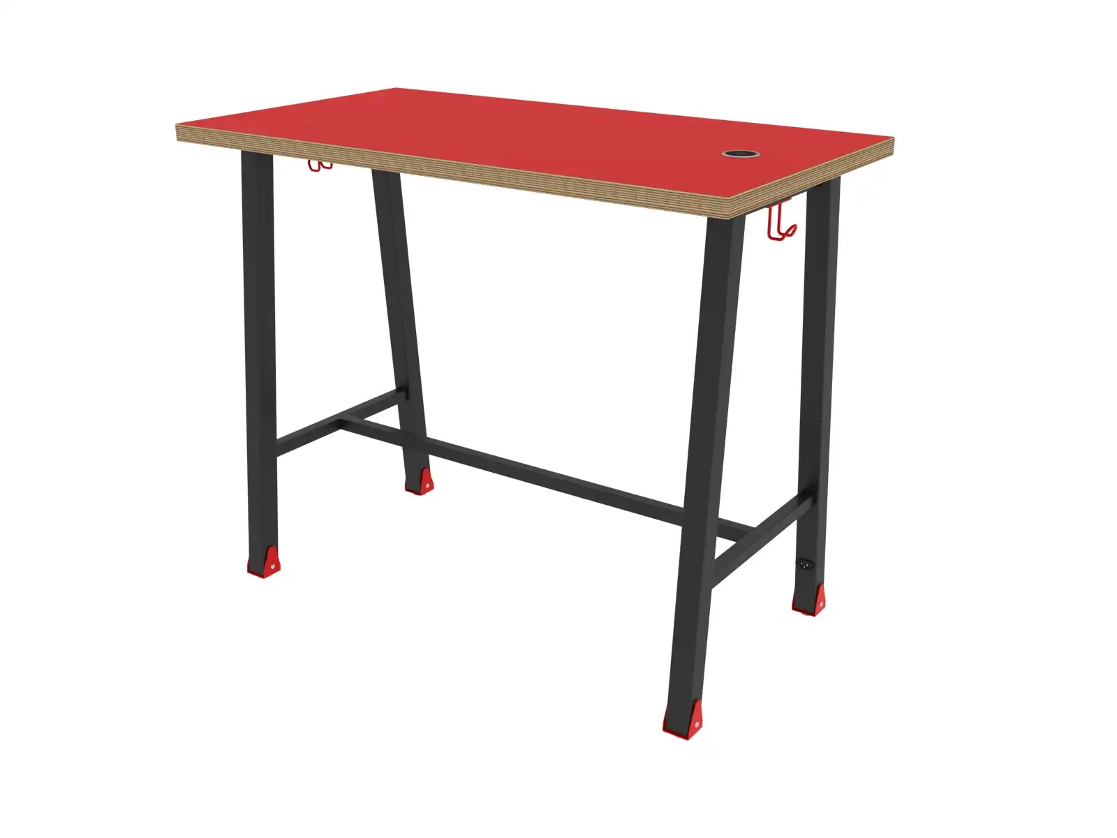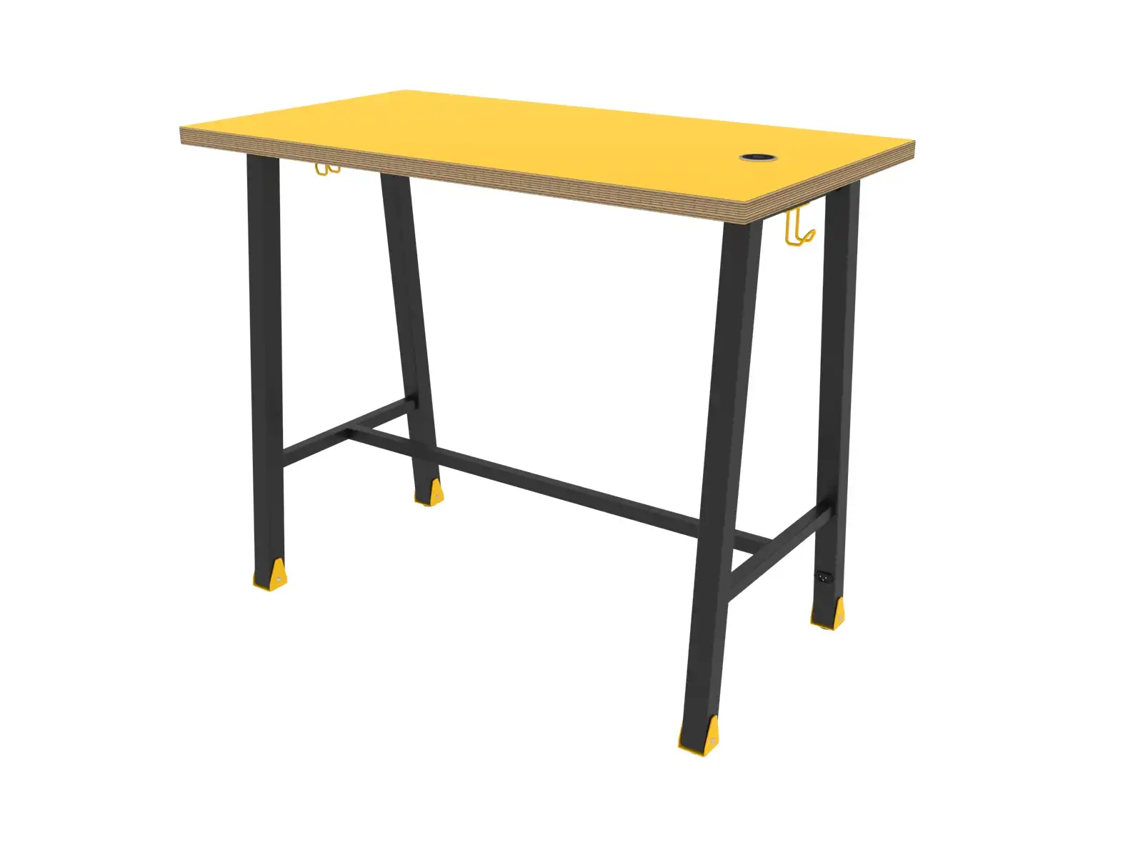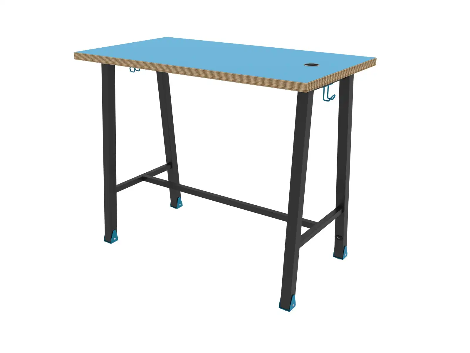Konštrukcia z kovovej jokloviny 50x50 mm. Doska stola je preglejka hrubá 15 mm, obojstranne potiahnutá dekoritovou vrstvou, hrany vyfrézované, povrchovo upravené ľanovým olejom.