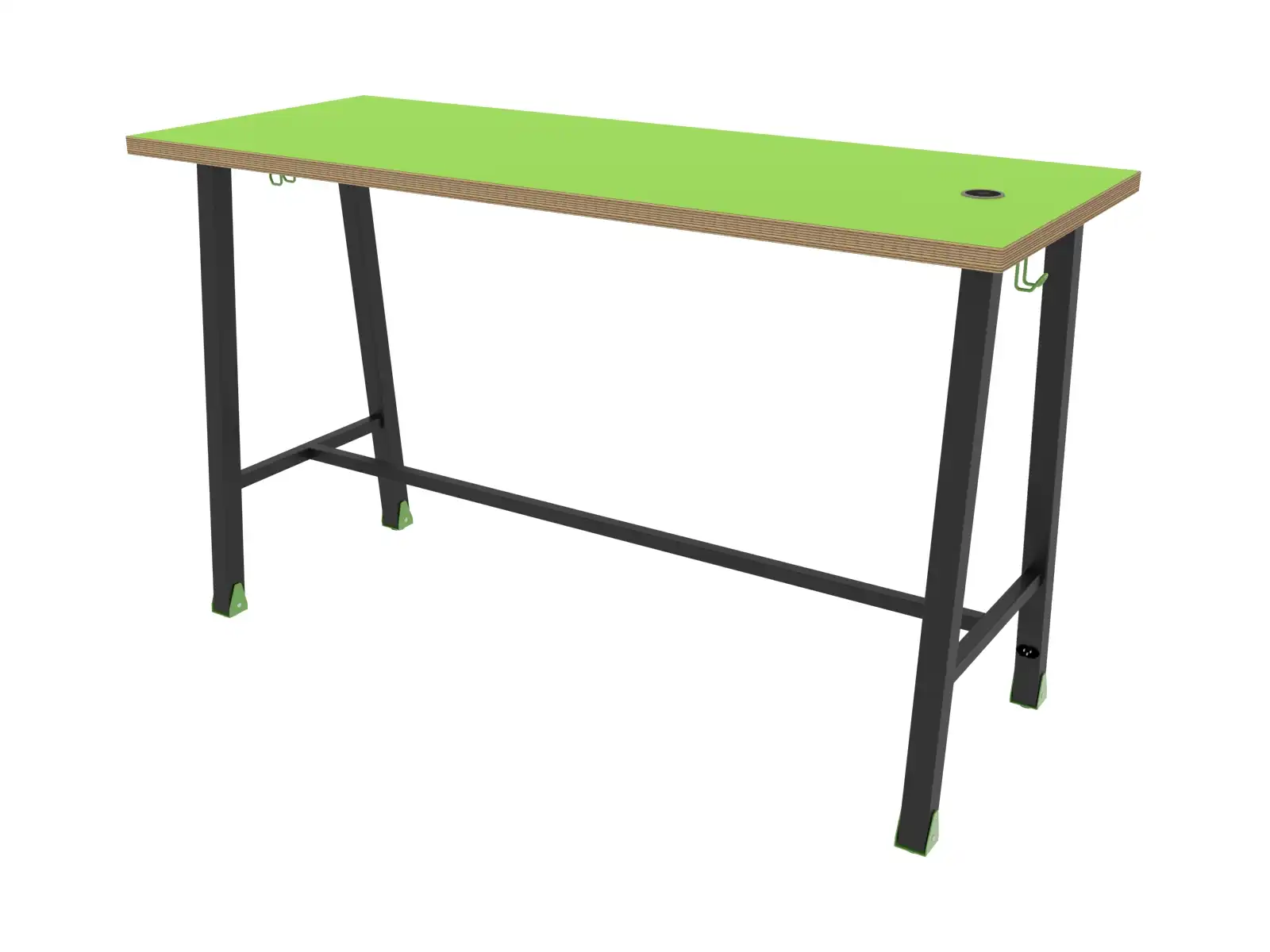 Konštrukcia z kovovej jokloviny 50x50 mm. Doska stola je preglejka hrubá 15 mm, obojstranne potiahnutá dekoritovou vrstvou, hrany vyfrézované, povrchovo upravené ľanovým olejom.