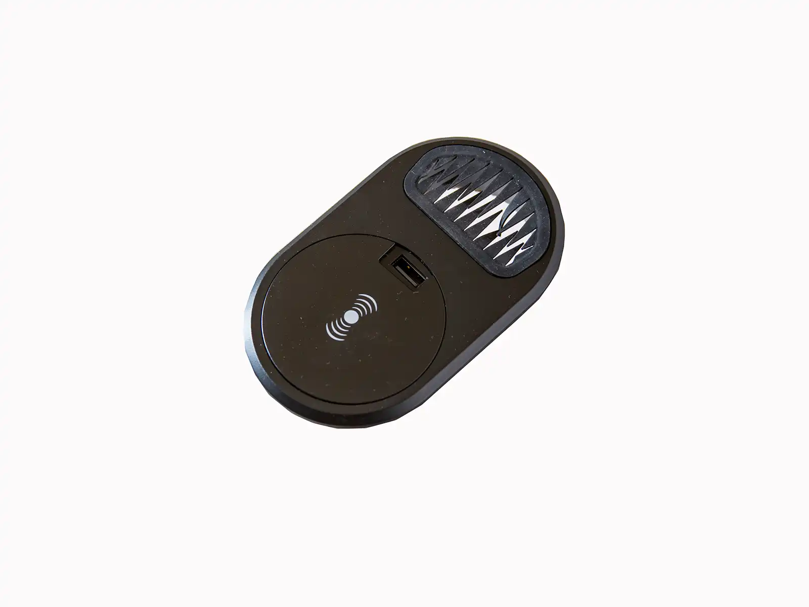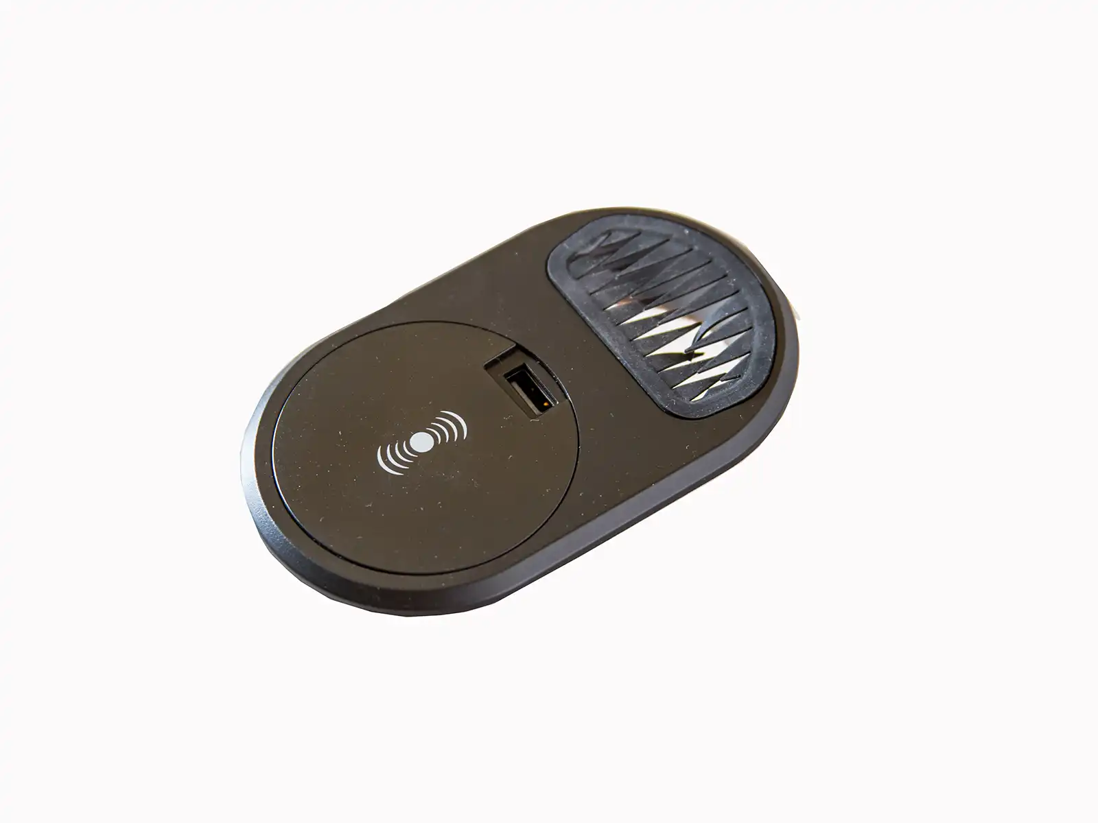Zabudovaná nabíjačka ,drôtová a bezdrôtová možnosť, výkon 10 W , rozmer: 12,5x7,5 cm, bez adaptéra