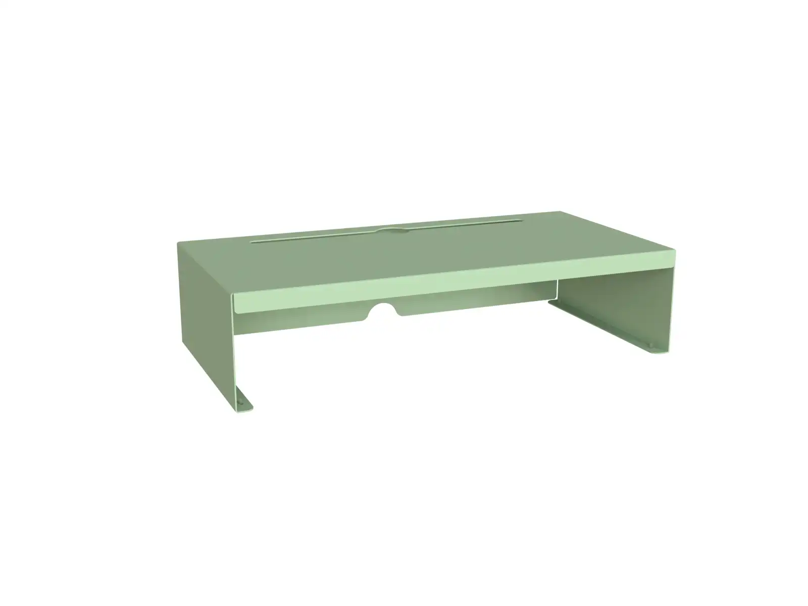 Vyrobené z 1,5 mm hrubého ohýbaného oceľového plechu s elektrostatickým práškovým nástrekom. S otvorom pre káblový vstup. Výškovo nastaviteľná základňa monitora je vybavená silikónovými zarážkami, takže sa po doske stola nekĺže ani bez upevnenia.