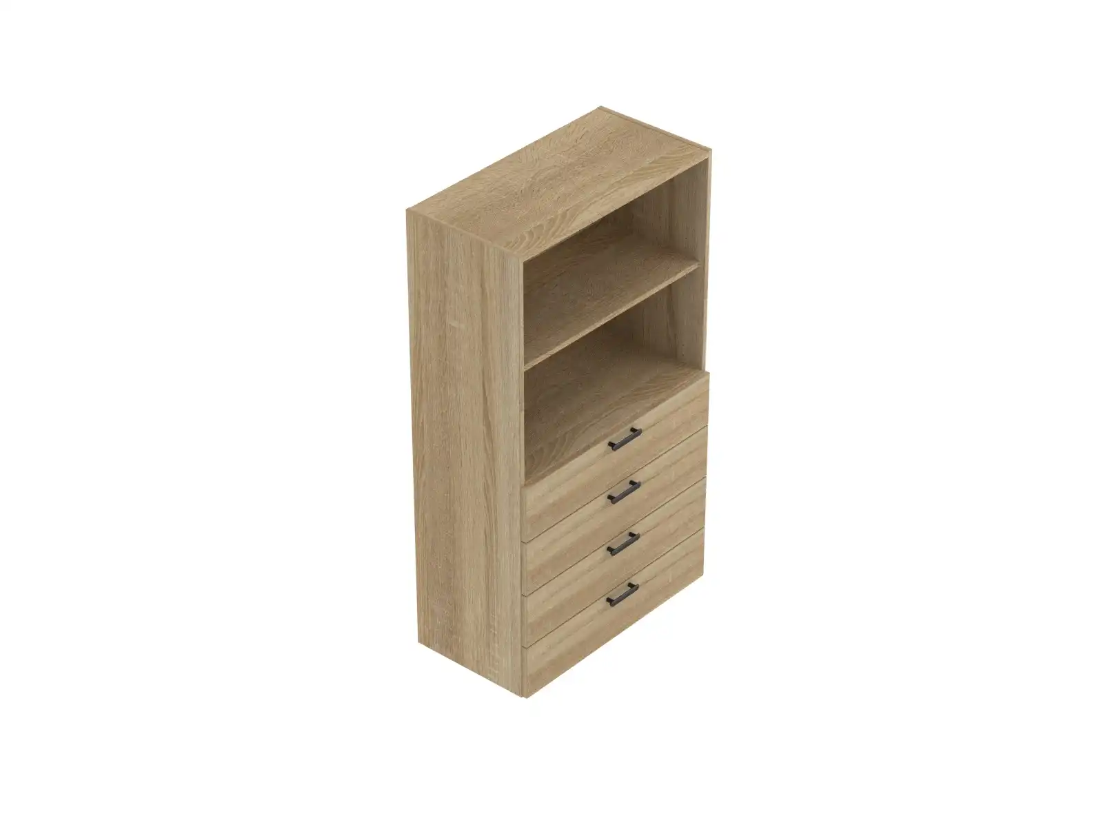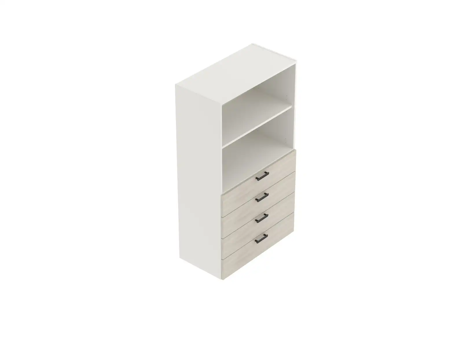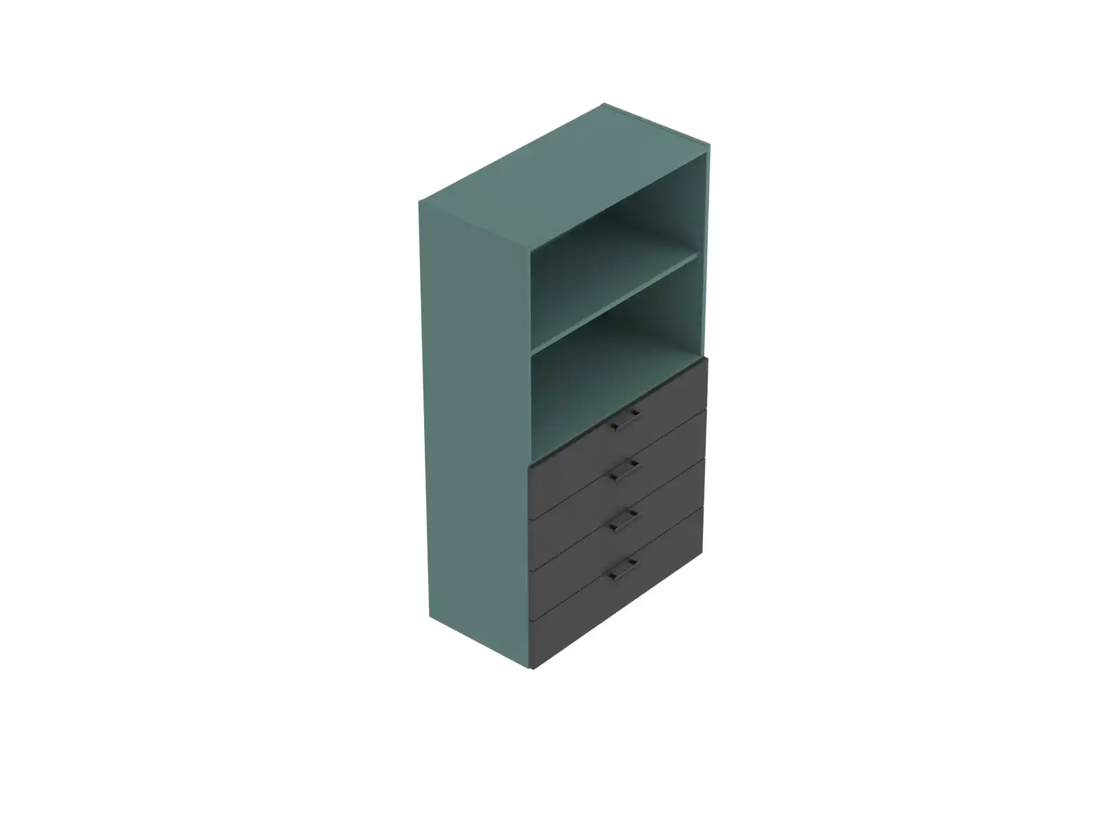 Korpus a predná doska zásuviek sú vyrobené z laminovanej drevotrieskovej dosky hrúbky 18 mm, s 2 mm ABS hranou. 4 zásuvky. Ku skriniam je možné objednať aj hrubšie laminované drevotrieskové dosky, ktoré zdôrazňujú jednotu skríň a stolov.