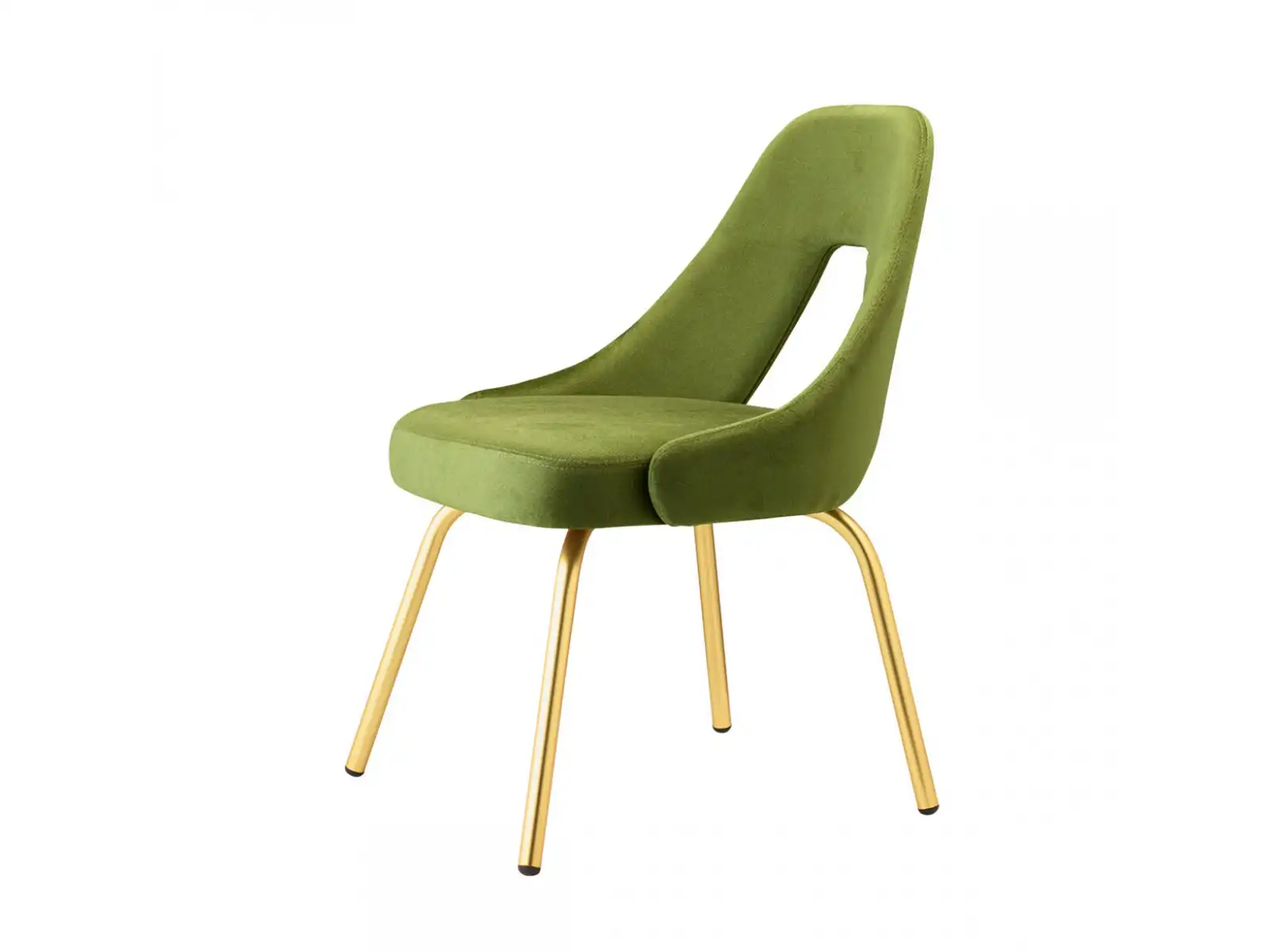 25 mm oceľová konštrukcia, lesklé nohy, žltozelené saténové čalúnenie. Vhodná do interiéru.
