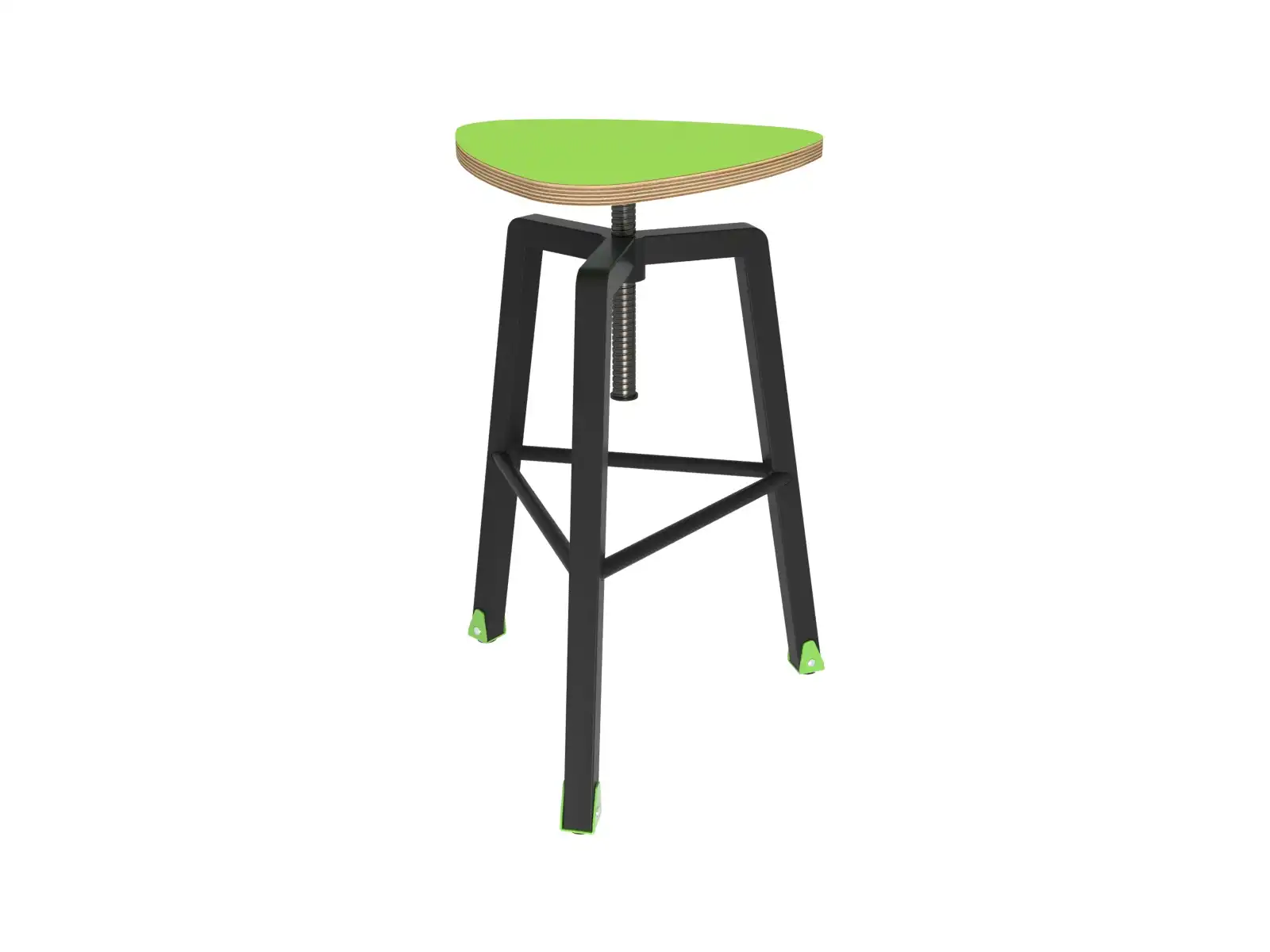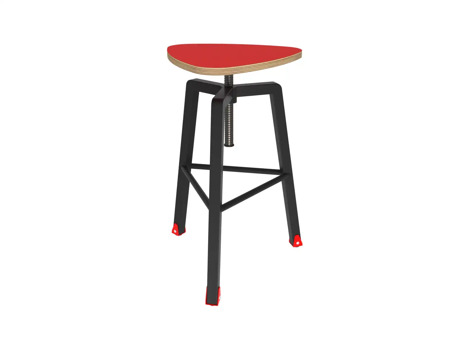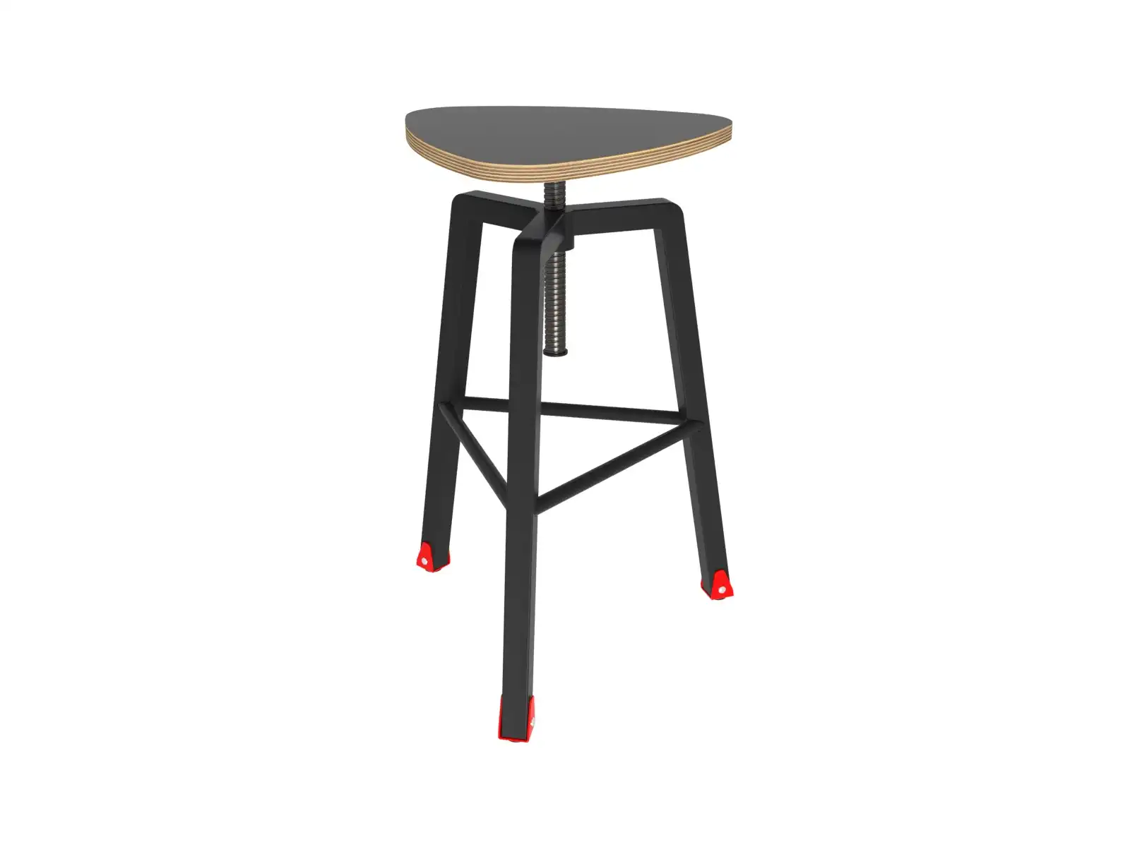Špeciálne tvarovaná, na mieru navrhnutá barová stolička. Hodí sa k stolom Duran aj Kold. Konštrukcia nôh je elektrostaticky práškovo lakovaná 30x30 mm joklovina, opierka nôh 18 mm oceľová trubka, konce nôh sú opatrené rektifikáciou M8 25x5 mm pre elimináciu nerovností podlahy. Sedacia plocha je 18 mm hrubá preglejka potiahnutá z obidvoch strán dekoritovou vrstvou, lemovaná ľanovým olejom. Lichobežníkový sedák umožňuje jednoduché nastavenie sedacej plochy stoličiek.