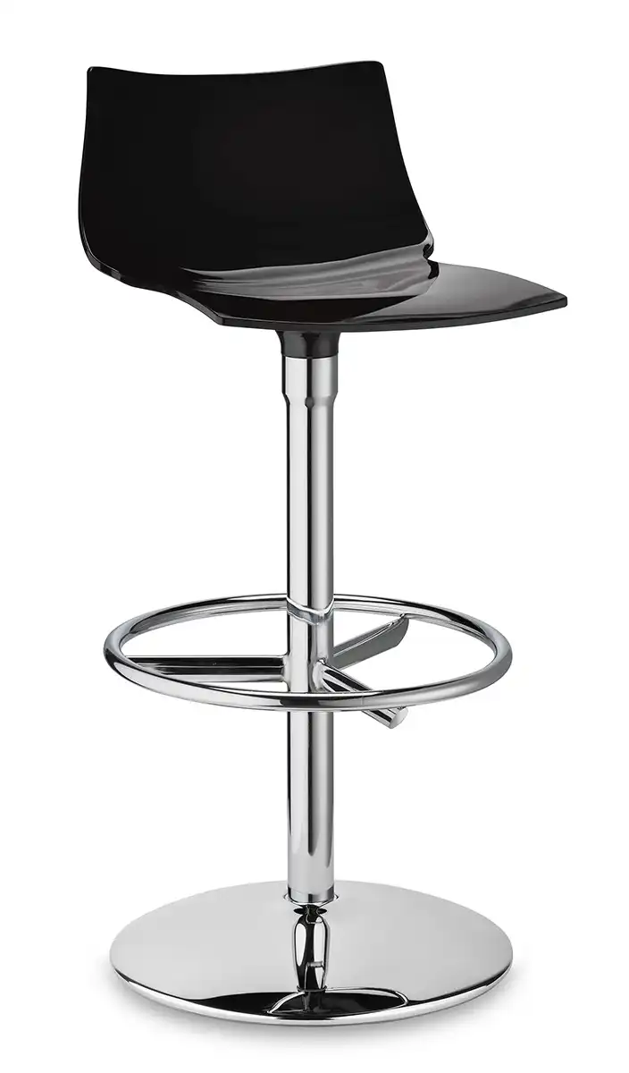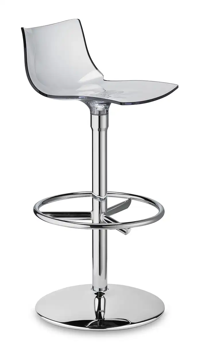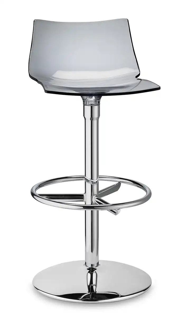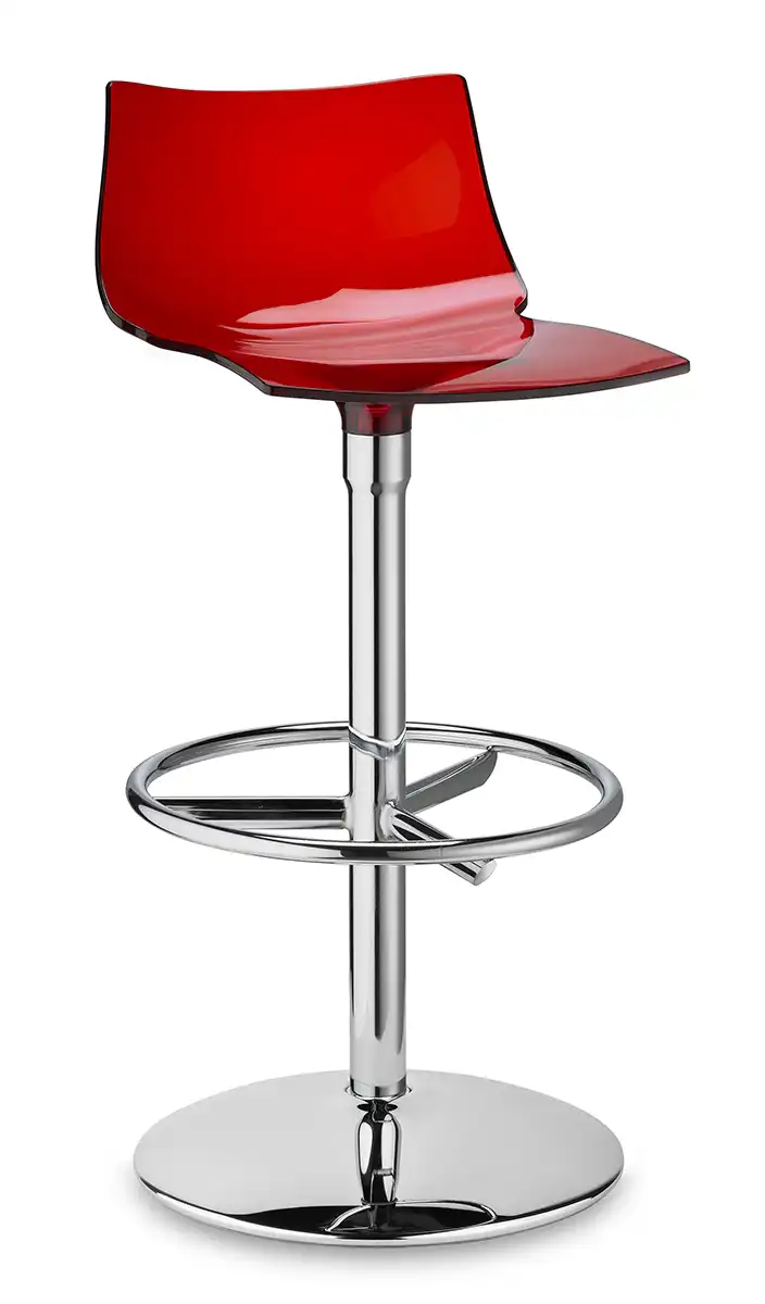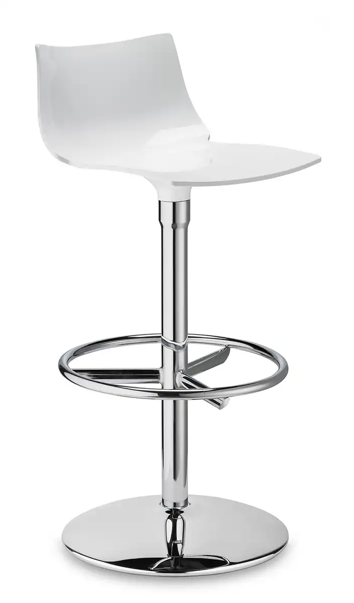 Výškovo nastaviteľná, chrómovaná otočná barová stolička, plasový sedák. Vhodná do interiéru. Výška 75 cm.