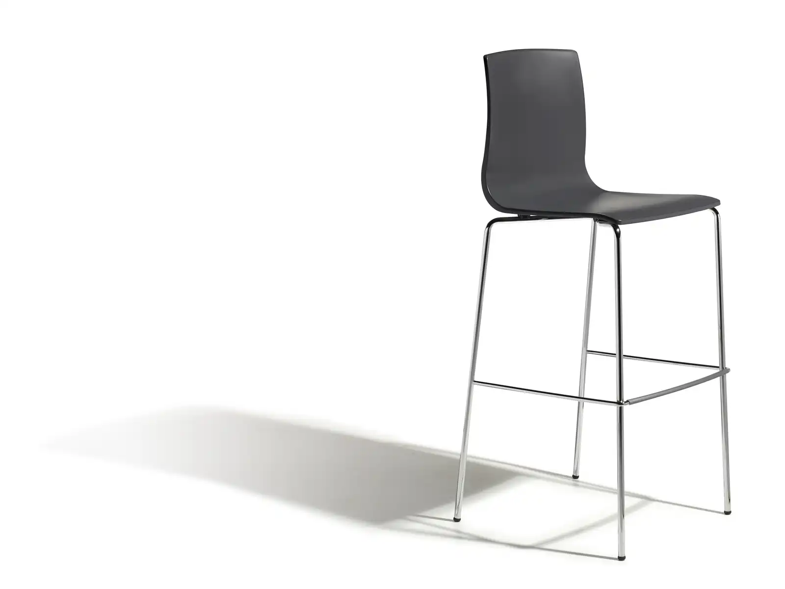 16 mm oceľová konštrukcia, plastový sedák. Stohovateľná. Výška sedu 80cm.