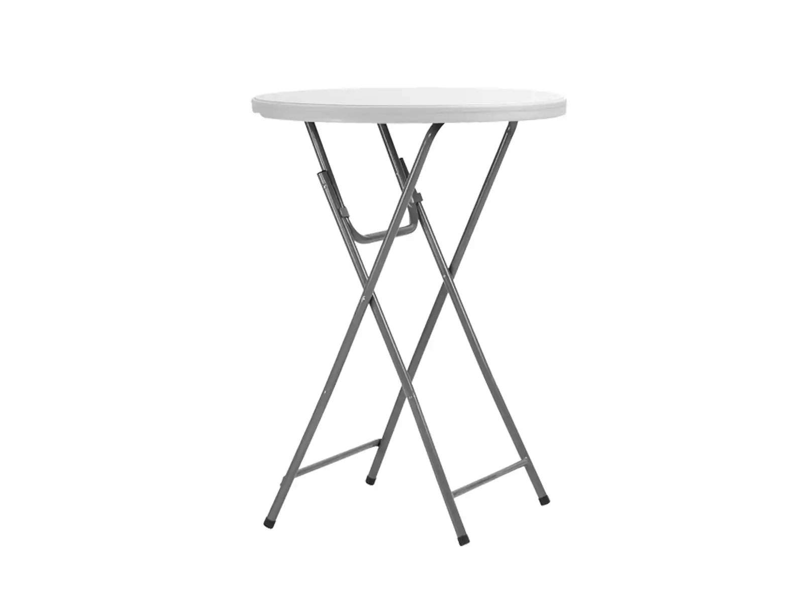 Skladací barový stôl, 80 cm plastová doska. Výška 110 cm. Vhodný aj do exteriéru. Na doobjednanie prepravný vozík k stolu