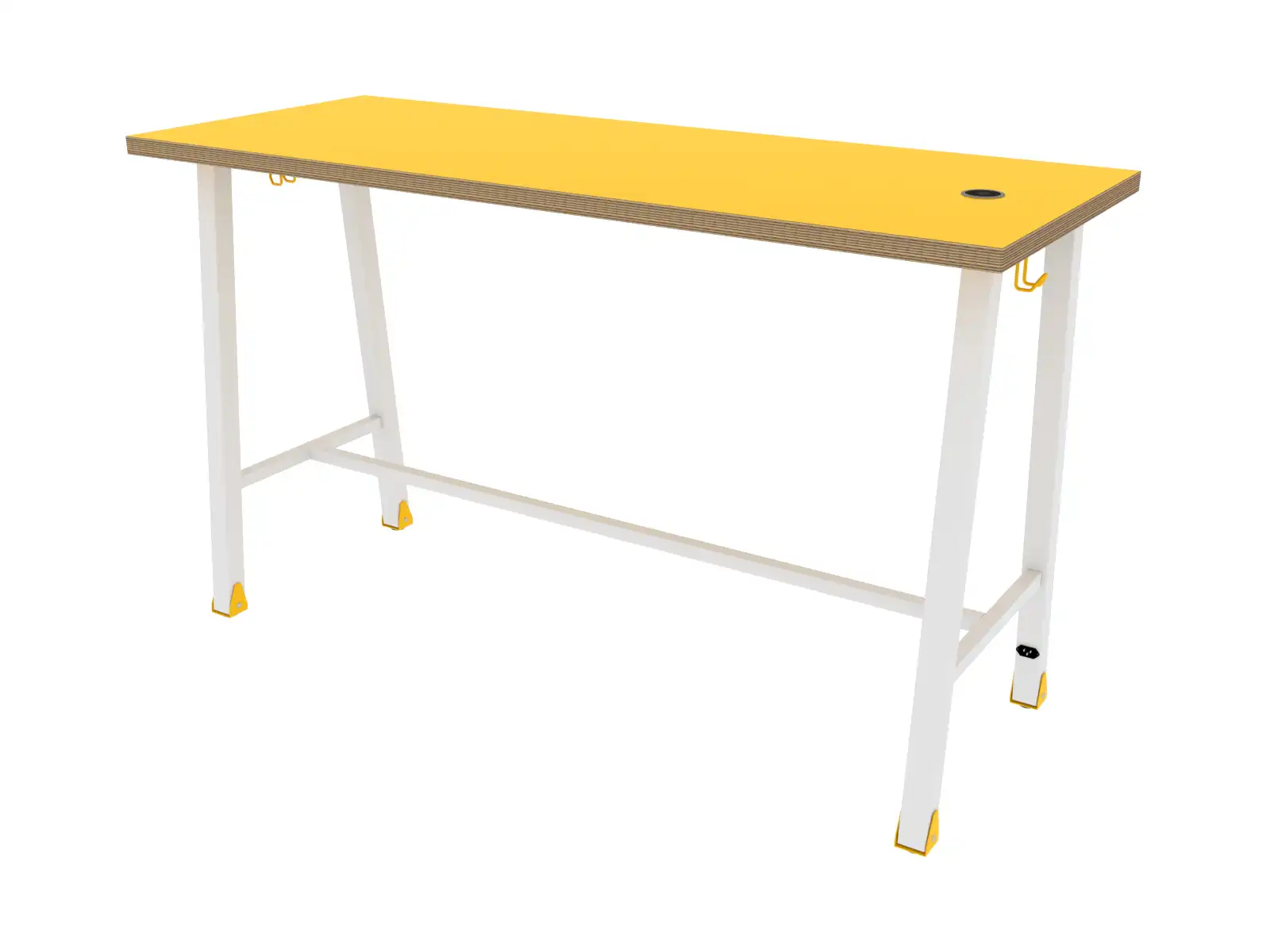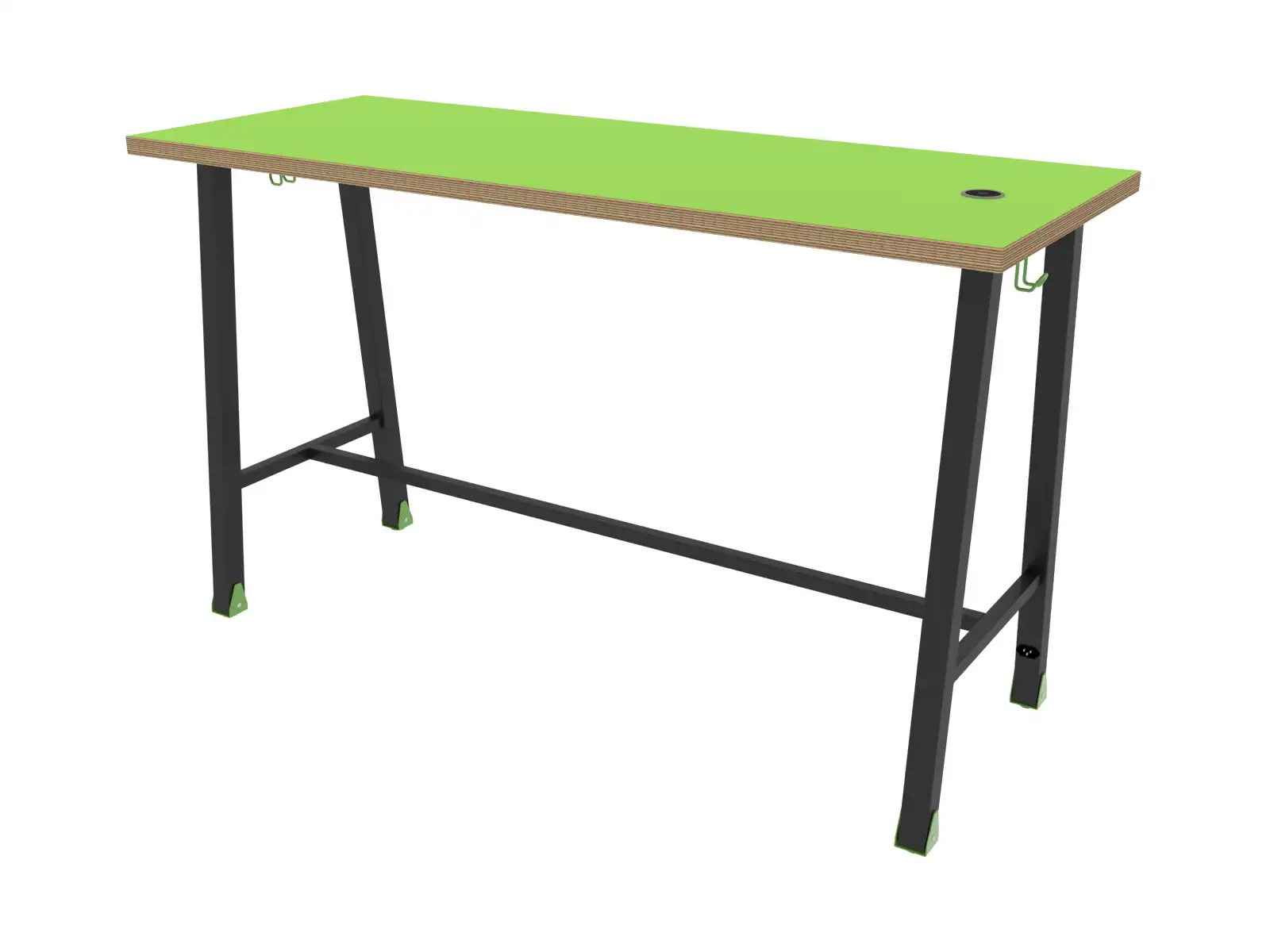 Konštrukcia z kovovej jokloviny 50x50 mm. Doska stola je preglejka hrubá 15 mm, obojstranne potiahnutá dekritovou vrstvou, hrany vyfrézované, povrchovo upravené ľanovým olejom. Na doobjednanie bezdrôtová USB nabíjačka, na obidvoch stranách háčik na tašku.