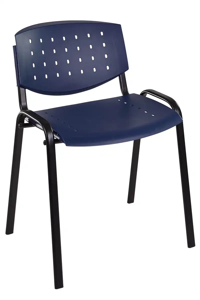 Čierna oceľová konštrukcia, čalúnený sedák a operadlo, stohovateľná, nosnosť: 110 kg.