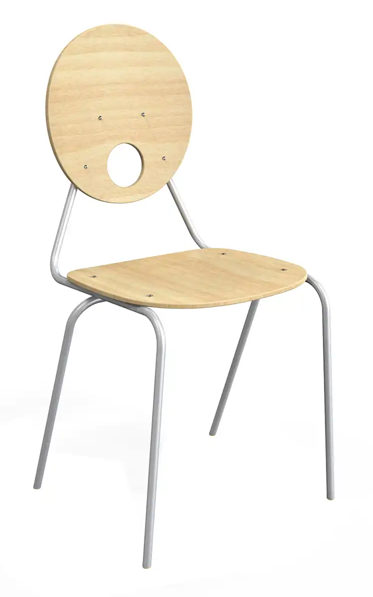 18 mm kovová konštrukcia, plastové podnože, sedák a operadlo buková preglejka . Vhodná do interiéru, stohovateľná.