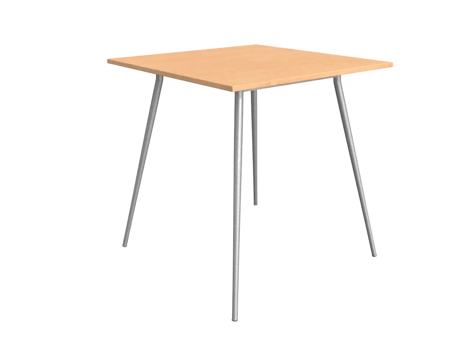 Oceľová konštrukcia, zúžené nohy, rozmer 80x80 cm, 18 mm laminátová doska.