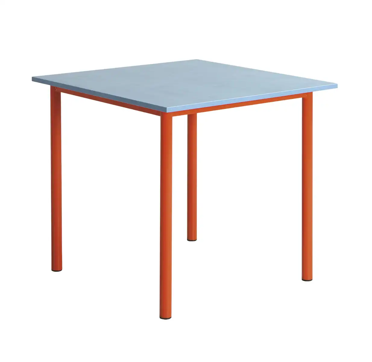 Konštrukcia kovová trubka s priemerom 40 mm, 80x80 cm laminátová doska stola, plastové podnože.